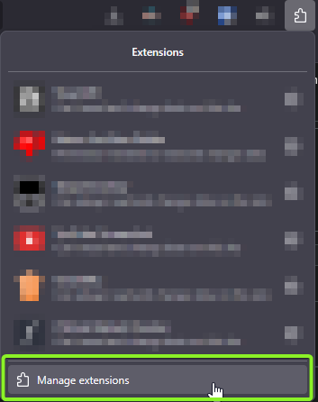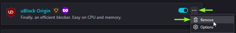 - حدد موقع أي إضافات لحظر الإعلانات أو متعلقة بالتتبع وانقر على قائمة النقاط الثلاث بجانبها.
