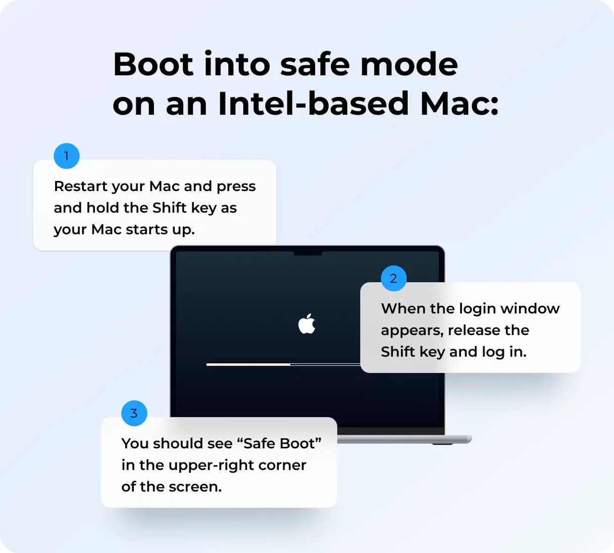لتشغيل جهاز Mac الخاص بك المزود بمعالج Intel في الوضع الآمن (Safe Mode) لتشخيص وحل المشكلات، اتبع الخطوات التالية بعناية: