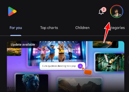2. انقر على أيقونة ملفك الشخصي في الزاوية العلوية اليمنى.