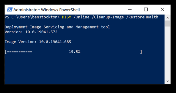 - في نافذة PowerShell، اكتب DISM /Online /Cleanup-Image /RestoreHealth واسمح للعملية بالإكمال، والتي قد تستغرق بعض الوقت.