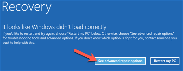 - للقيام بذلك، اضغط على مفتاح F8 أثناء بدء التشغيل، ثم حدد See advanced repair options (عرض خيارات الإصلاح المتقدمة).