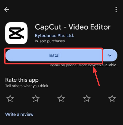 - الآن، ارجع إلى متجر App Store أو متجر Google Play، وابحث عن CapCut مرة أخرى، ثم اضغط على زر تثبيت لتنزيله.