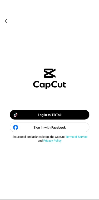 - الآن، قم بتشغيل تطبيق CapCut بينما يكون الـ VPN متصلاً. اضغط على التسجيل أو إنشاء حساب جديد، واتبع التعليمات لإنشاء حساب جديد.