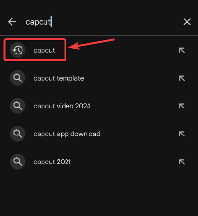 - اكتب CapCut في شريط البحث وافتح صفحة التطبيق الخاصة به.