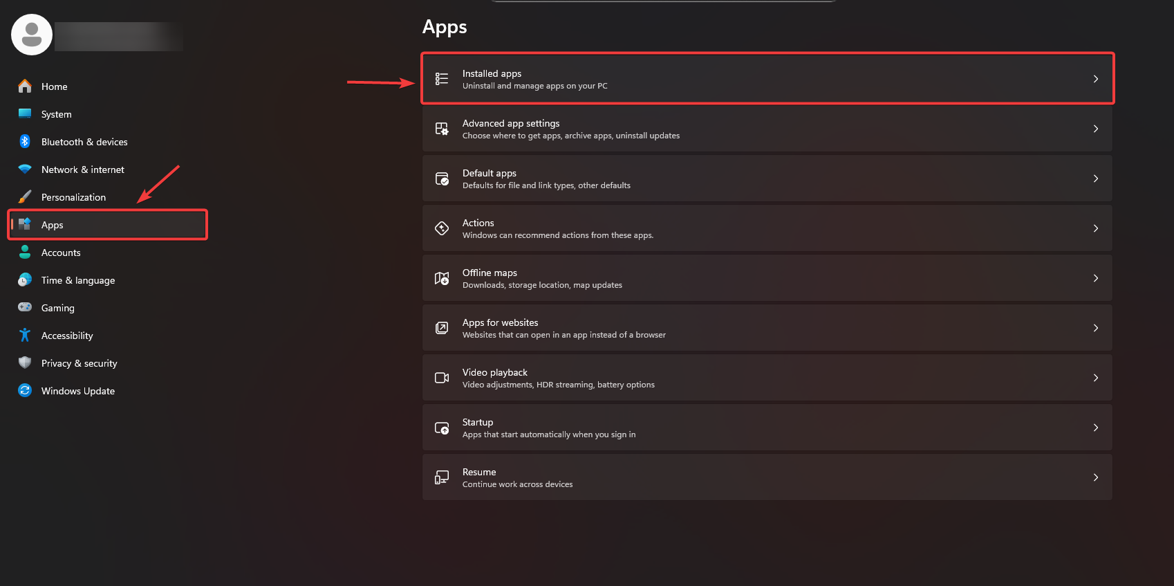 2. انتقل إلى التطبيقات > التطبيقات المثبتة.