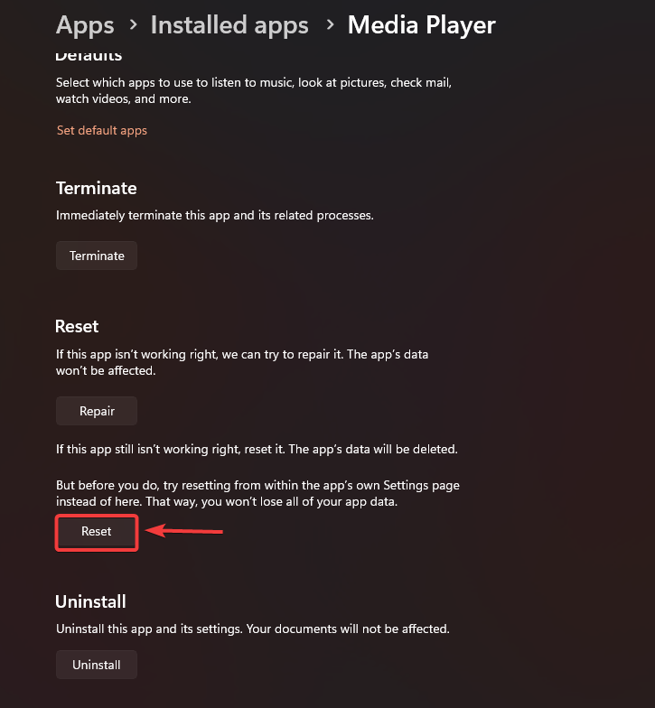 3. أزل علامة التحديد من مربع Windows Media Player.