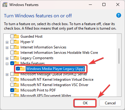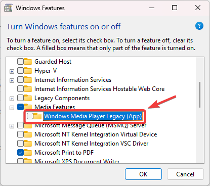 7. أعد تحديد مربع Windows Media Player لتمكينه مرة أخرى.