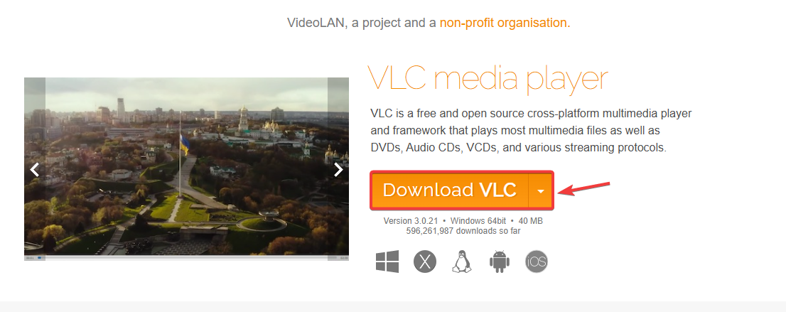 2. انقر على تنزيل VLC للحصول على أحدث إصدار لنظام التشغيل الخاص بك.