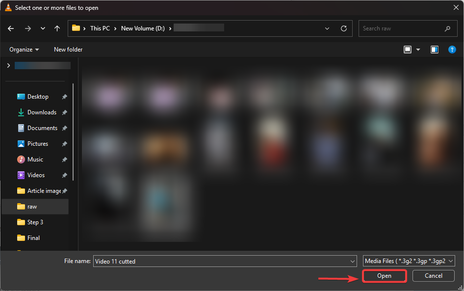 6. استعرض للوصول إلى الملف الذي لم يتم تشغيله في Windows Media Player وانقر على فتح.