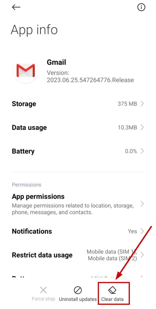 - مسح ذاكرة التخزين المؤقت وبيانات التطبيق: كثرة ذاكرة التخزين المؤقت ليست مفيدة لأي تطبيق، وينطبق الأمر نفسه على Gmail. هناك احتمال كبير أن يكون هذا هو السبب وراء تعثر رسائلك في صندوق الصادر، لذا فإن مسح كل من ذاكرة التخزين المؤقت والبيانات سيزيل أي أخطاء كانت سببًا لهذه المشكلة. بالإضافة إلى ذلك، لا يؤدي مسح البيانات إلى إزالة أي شيء من حسابك، ولن تفقد أيًا من رسائلك، لذلك لا داعي للقلق.