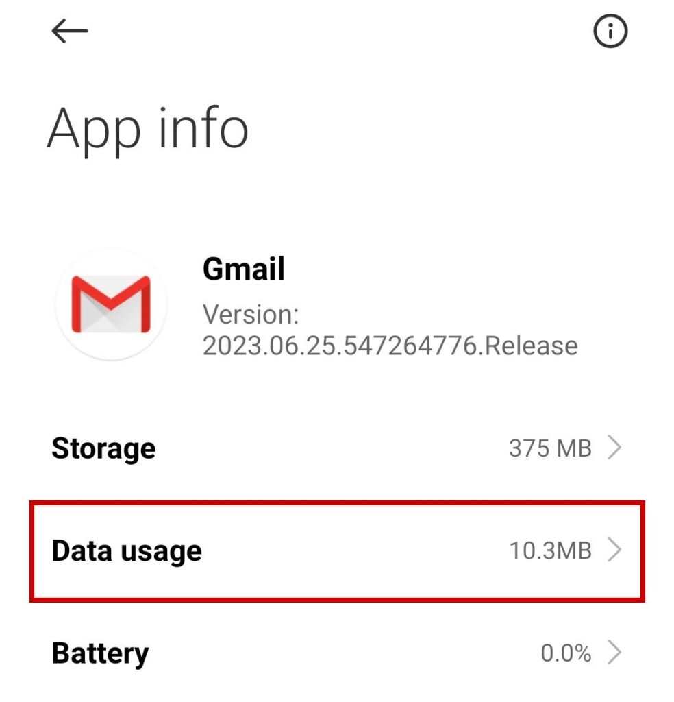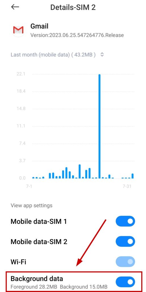 3. تفعيل بيانات الخلفية لتطبيق Gmail