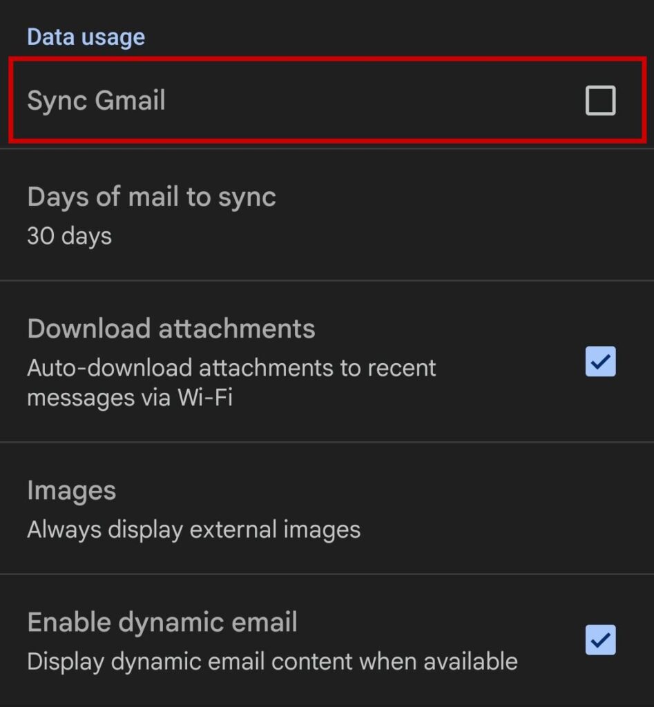 - إلغاء المزامنة وإعادة مزامنة Gmail: قد تتوقف وظيفة المزامنة عن العمل أحيانًا في Gmail، لذا فإن إعادة تشغيلها ببساطة سترسل رسائلك المتراكمة في صندوق الصادر.
