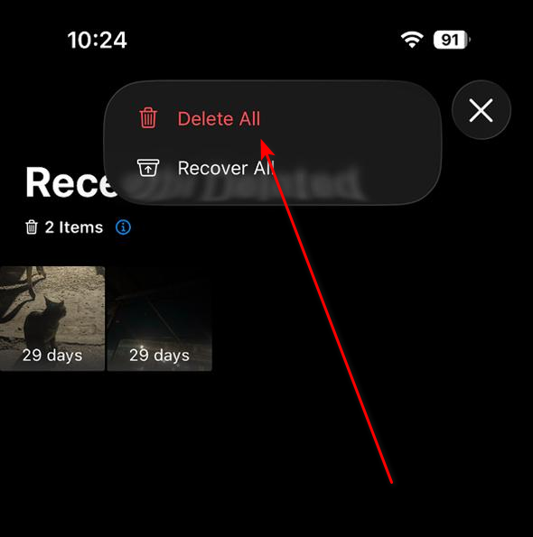 3. إفراغ العناصر المحذوفة مؤخرًا في الصور والملفات