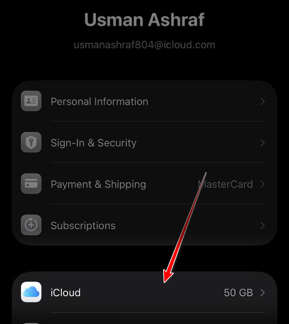 - اضغط على اسم Apple ID الخاص بك > iCloud.