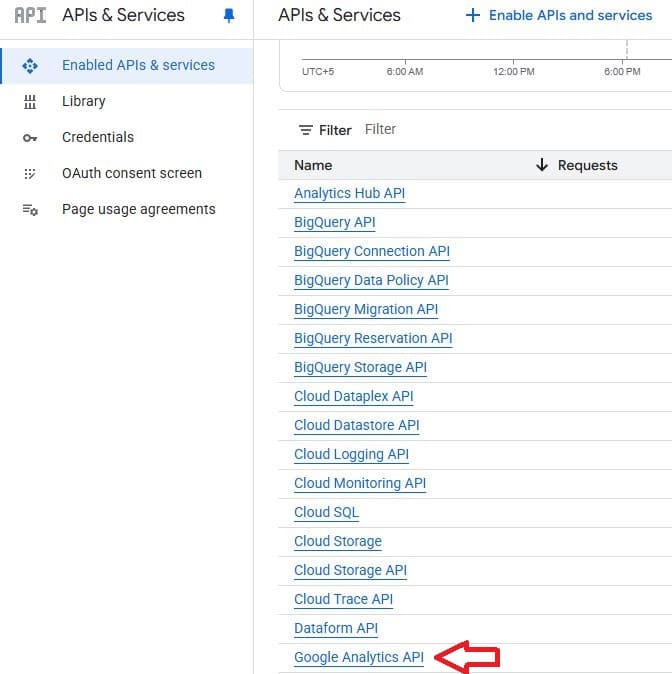 ابحث عن Google Analytics API وحددها من القائمة.