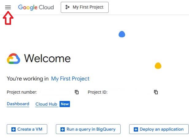 قم بزيارة Google Cloud Console وسجل الدخول باستخدام بيانات الاعتماد الخاصة بك.