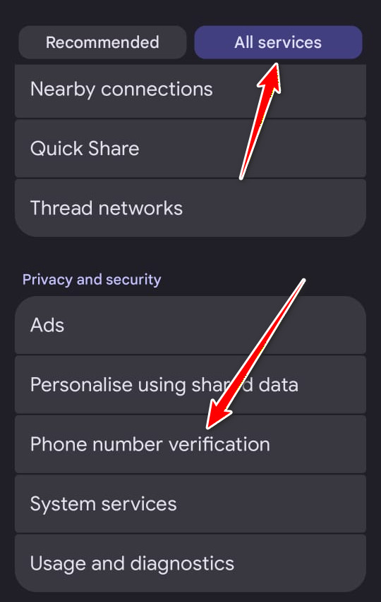 - حدد جميع الخدمات ثم اضغط على التحقق من رقم الهاتف.