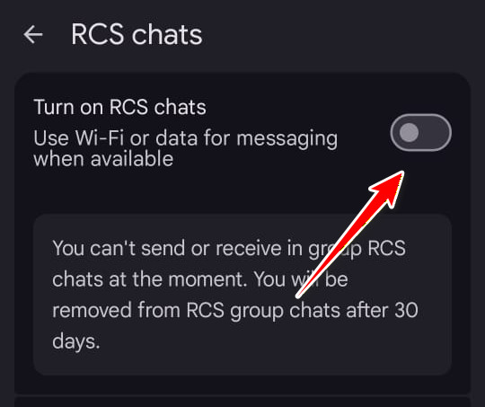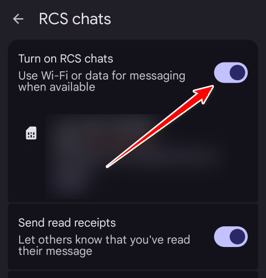 - أعد تمكين محادثات RCS وتحقق مرة أخرى.