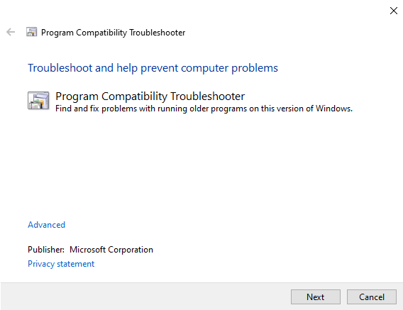 1. انقر فوق التالي لبدء فحص البرامج التي تتطلب استكشاف الأخطاء وإصلاحها.