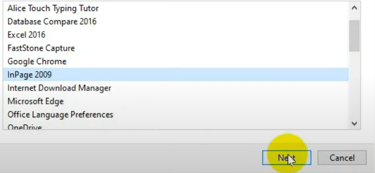 2. حدد البرنامج الذي يسبب الخطأ وانقر فوق التالي.