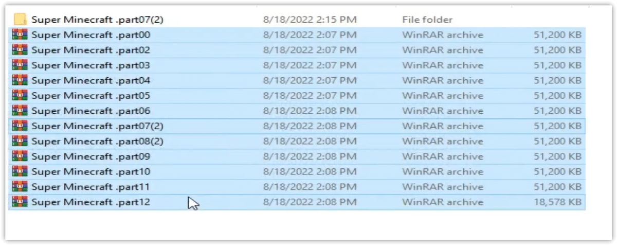 - حدد الجزء التالي بناءً على ترتيب التسمية (مثال: حدد file.part2.rar بعد file.part1.rar).