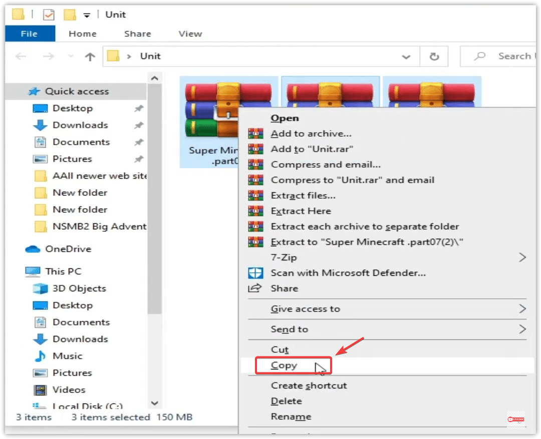 - استخدم نافذة مستكشف الملفات لتحديد موقع المجلد الذي تم حفظ أجزاء الأرشيف الأخرى فيه.