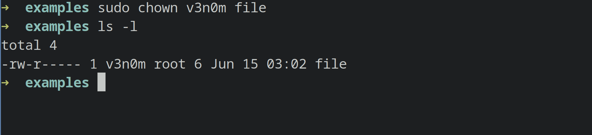 sudo chown v3n0m file