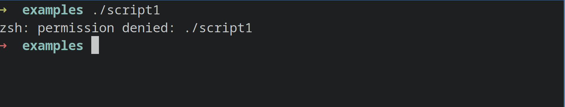 لنفترض أننا نريد تنفيذ script يسمى script1. نكتب ./script1 في طرفيتنا ويظهر لنا هذا الخطأ:
