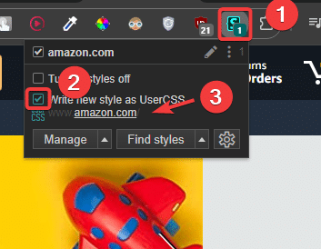 - بمجرد تثبيت الإضافة، افتحها واختر Write a new style for www.amazon.com.