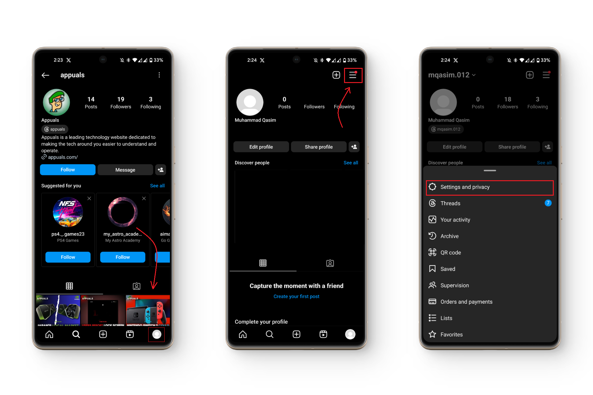 - افتح Instagram واضغط على أيقونة الملف الشخصي في الركن السفلي الأيمن.