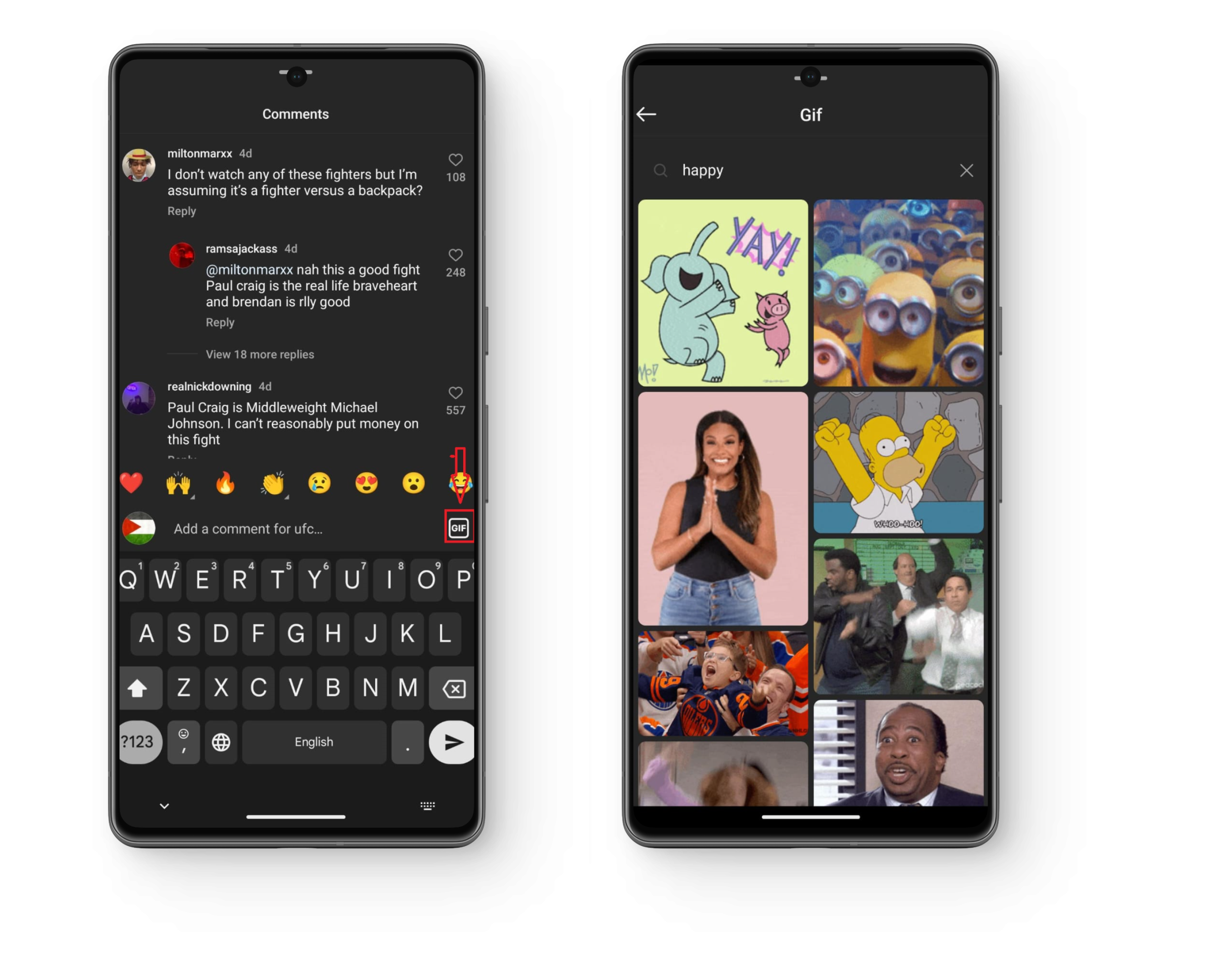 بمجرد تحديد موقع GIF والتأكد من أنه الصحيح، ما عليك سوى النقر عليه. سيؤدي هذا إلى نشر GIF فورًا في تعليقات المنشور، مما يكمل العملية.