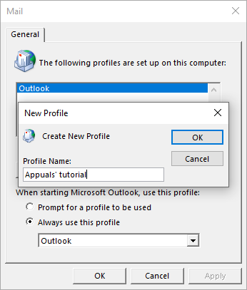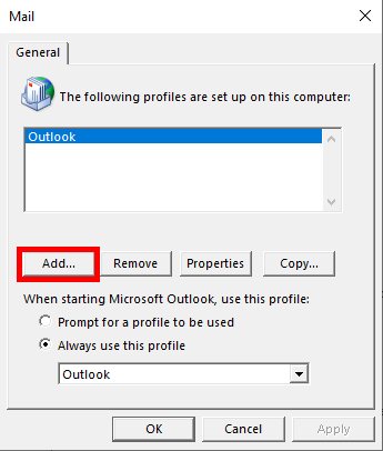 يمكن حل العديد من المشكلات المتعلقة بـ Outlook بسهولة عن طريق البدء من جديد بملف تعريف جديد. يعمل Outlook من خلال ملفات التعريف، والتي تشمل جميع معلوماتك، مثل رسائل البريد الإلكتروني والبيانات الأخرى الموجودة لديك.