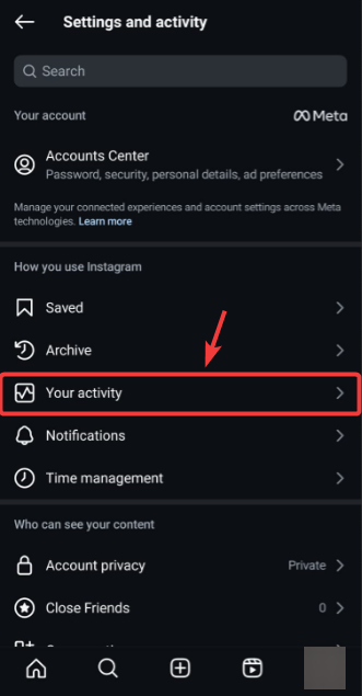 - اضغط على الخيار الذي يقول نشاطك.