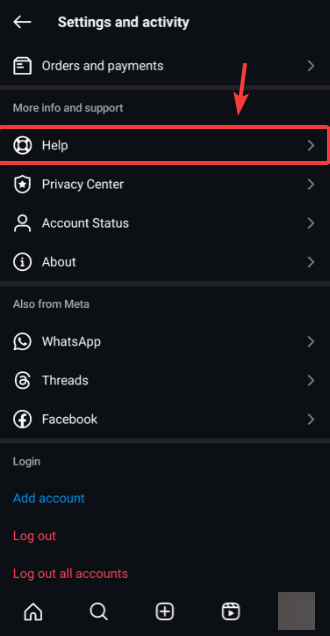 - مرر لأسفل إلى النهاية واضغط على مساعدة.