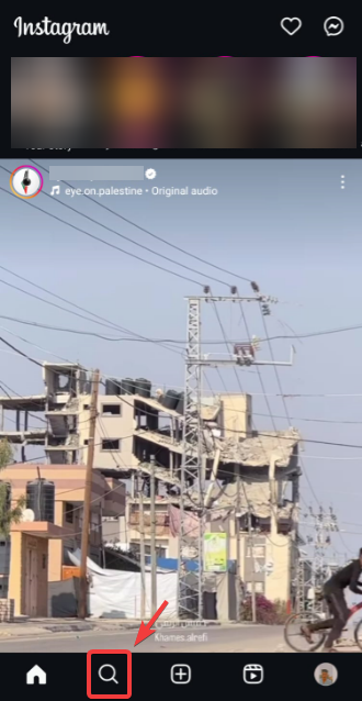 - من الصفحة الرئيسية لـ Instagram، اضغط على أيقونة البحث.