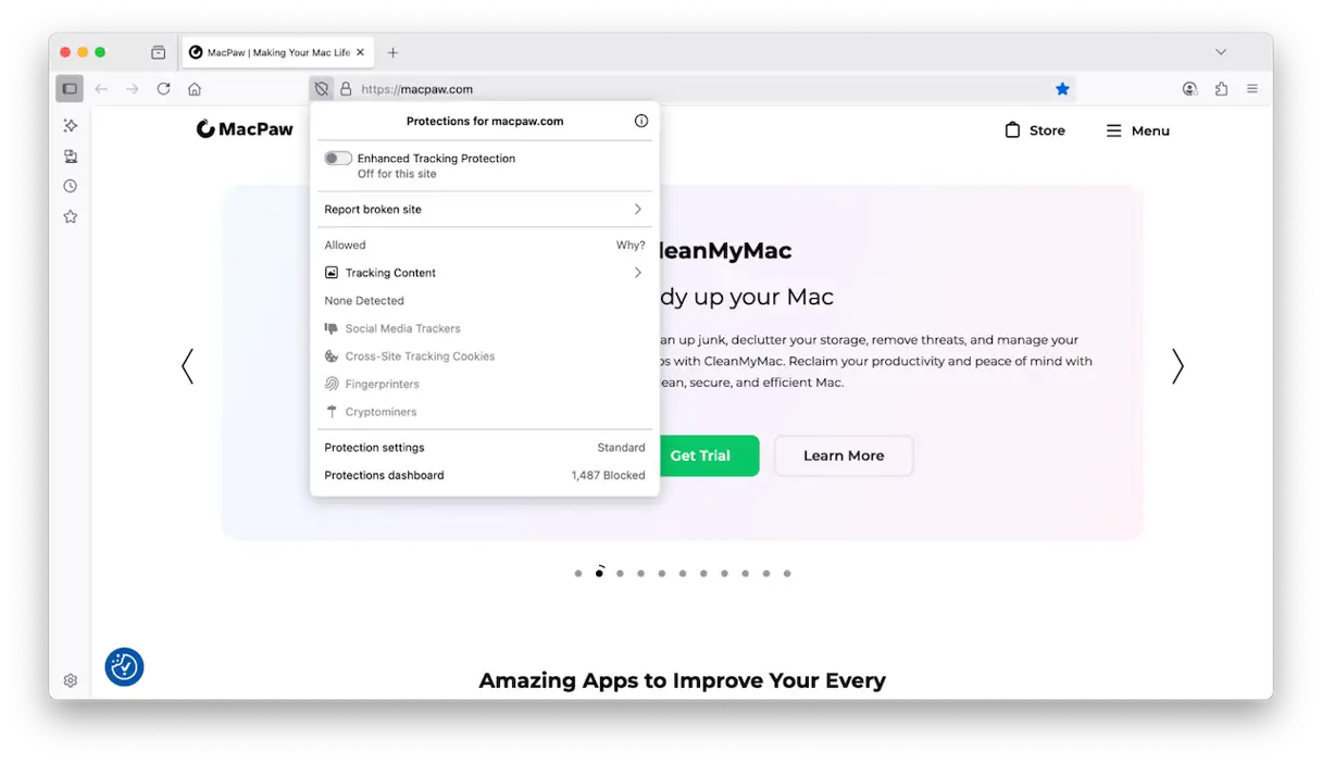 يتميز متصفح Firefox بآلية عمل مختلفة عن Safari و Chrome، حيث يوفر 3 مستويات لحماية الخصوصية: قياسي (Standard)، صارم (Strict)، ومخصص (Custom).