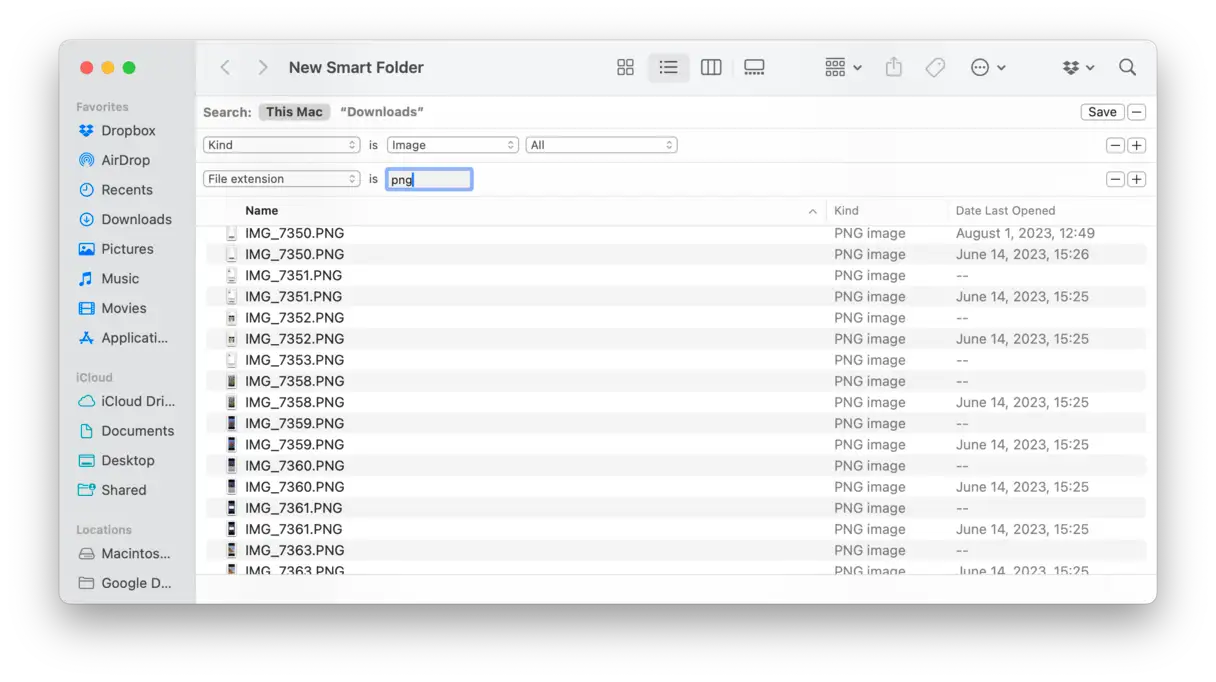 بما أنك تحدد معايير البحث في كل مجلد ذكي (Smart Folder)، فهذا يعني أنه يمكنك البحث عن أنواع معينة من الملفات أو الملفات ذات حجم معين. إليك كيفية القيام بذلك: