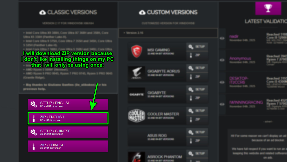 - قم بتنزيل CPU-Z من صفحة التنزيل الرسمية.