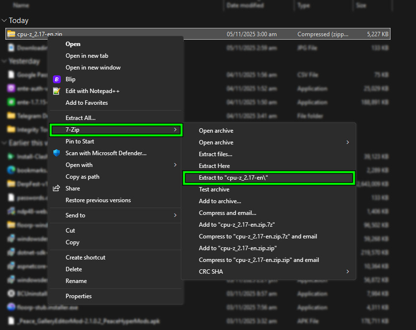 - استخرج ملف ZIP الذي تم تنزيله باستخدام 7-Zip أو أي أداة فك ضغط أخرى.