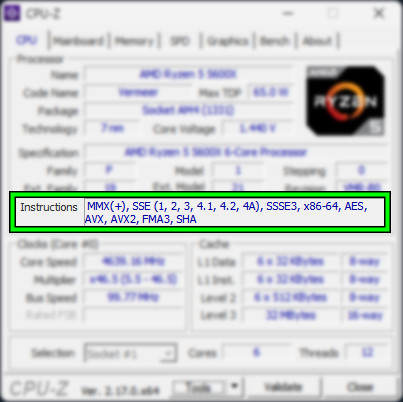 - بعد إعادة التشغيل، تحقق من دعم AVX عن طريق فتح Coreinfo أو CPU-Z والتحقق من قائمة التعليمات. إذا ظهر AVX أو AVX2، فإن وحدة المعالجة المركزية تدعمه وقد قامت Windows بتهيئته.