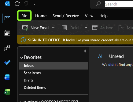 - افتح Outlook على جهاز الكمبيوتر الخاص بك.