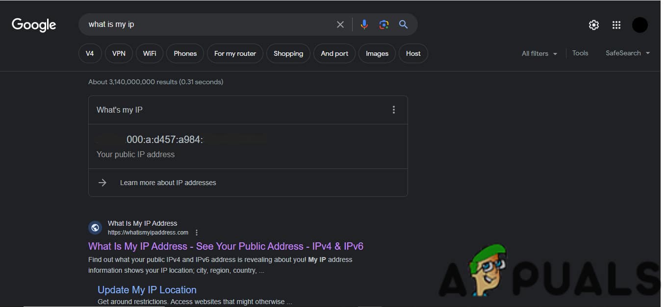 عندما يتعلق الأمر بتحديد موقع عنوان IP العام الخاص بك، فإن العملية بسيطة للغاية. عند الاتصال بالإنترنت والتفاعل مع متصفح أو موقع ويب، فإنهم يصلون إلى عنوان IP العام الخاص بك. وبالتالي، بغض النظر عن الجهاز (Windows أو Mac)، ما عليك سوى فتح متصفحك والبحث عن “ما هو عنوان IP الخاص بي؟“. في الصفحة الجديدة التي يتم تحميلها، سيتم عرض عنوان IPv4 أو IPv6 العام الخاص بك.