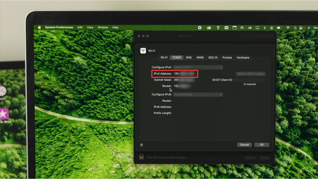 نعم، ما عليك سوى البحث عن IPv4 في Spotlight. في إصدارات macOS الأقدم، انتقل إلى System Preferences > Network > Select Wi-Fi > Advanced > TCP/IP.