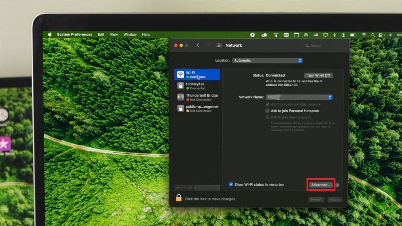 - الآن، حدد شبكة Wi-Fi الخاصة بك ثم انقر على خيار Advanced.