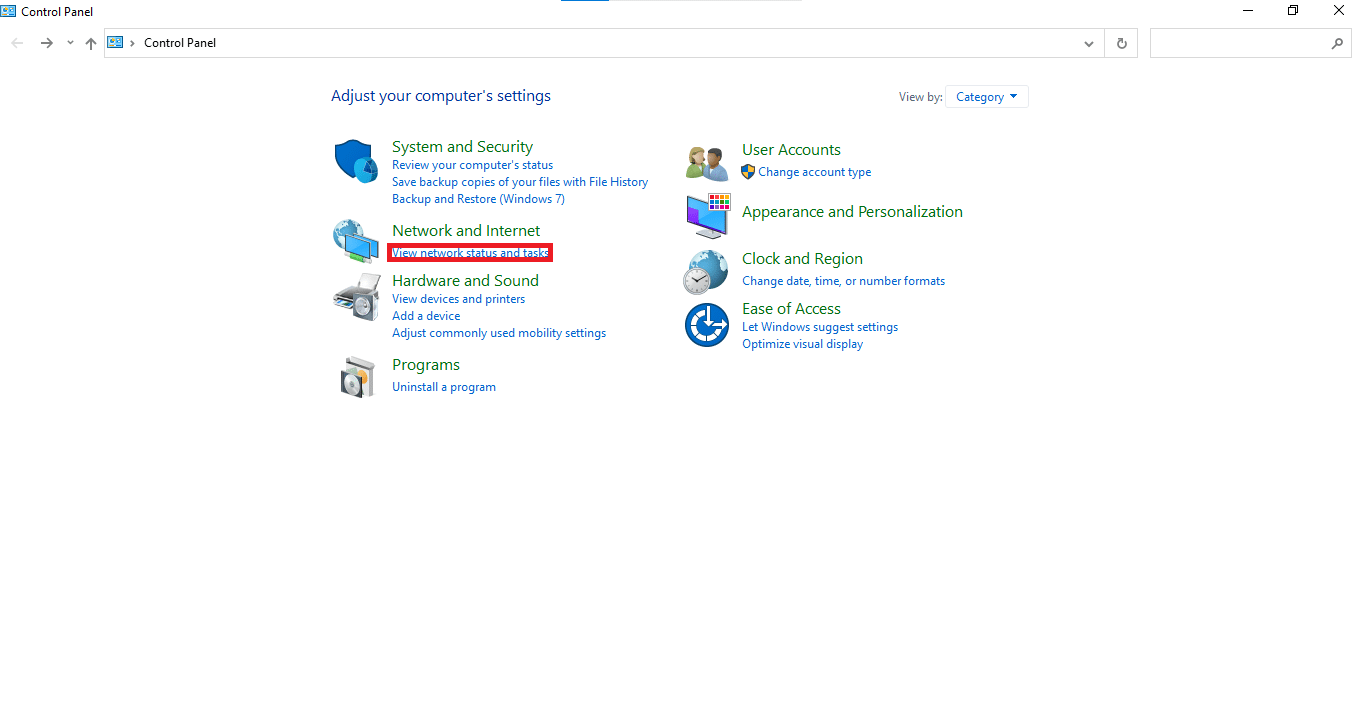 - بمجرد أن تفتح لوحة التحكم، انقر على “عرض حالة الشبكة والمهام” تحت عنوان الشبكة والإنترنت.