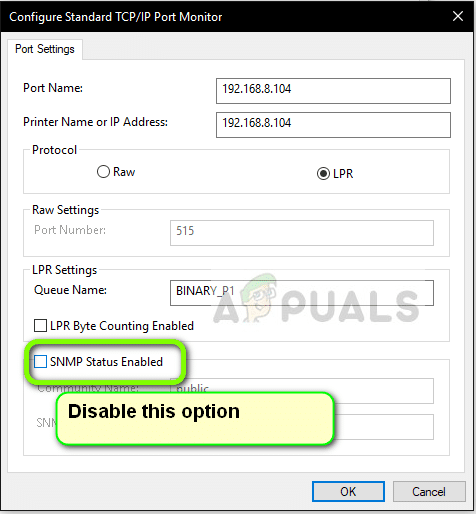 بروتوكول إدارة الشبكة البسيط (SNMP) هو بروتوكول مشهور لإدارة الشبكات يُستخدم لجمع المعلومات وتكوين أجهزة الشبكة التي تشمل الطابعات والخوادم والمحاور (hubs) وما إلى ذلك. من المعروف أن هذا البروتوكول يسبب مشاكل مع طابعات Brother وقد يؤدي إلى توقفها عن الاتصال بالإنترنت. سنقوم بتكوين إعدادات المنفذ الخاص بك ونرى ما إذا كان بإمكاننا معالجة هذا الأمر.