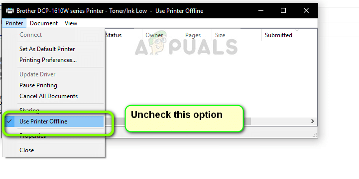 1. الآن انقر فوق الطابعة وألغِ تحديد الخيار استخدام الطابعة دون اتصال.