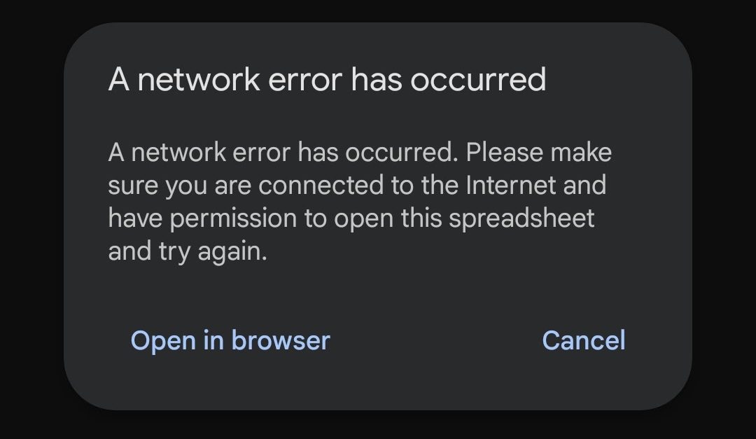 حل مشكلة حدث خطأ في الشبكة في Google Sheets