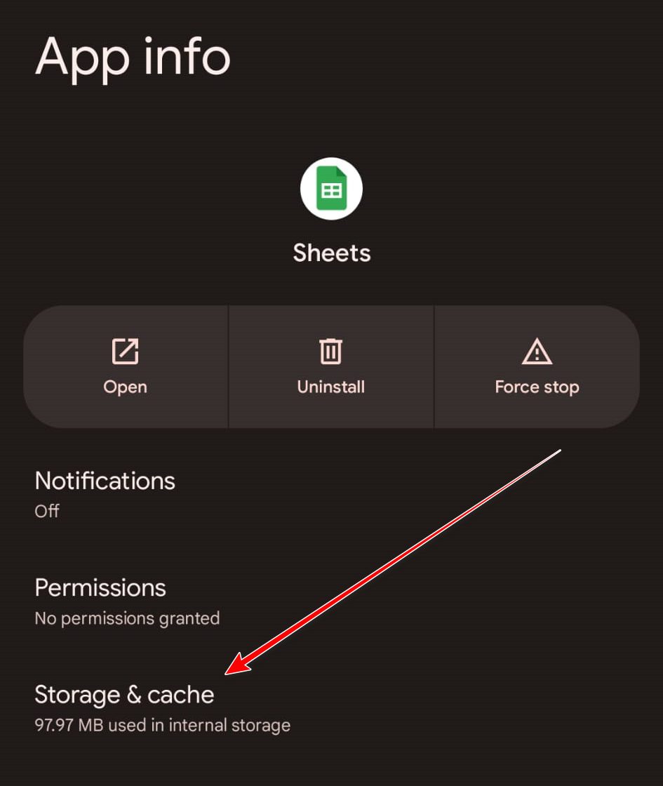 يعتمد Google Sheets على الملفات المخزنة مؤقتًا وأذونات الشبكة النشطة للمزامنة بشكل صحيح. عندما تكون ذاكرة التخزين المؤقت تالفة، قد يحاول التطبيق تحميل ملفات تالفة أو قديمة، مما يسبب أخطاء. مسح ذاكرة التخزين المؤقت يجبر التطبيق على إعادة بناء ملفات جديدة، مما يحل التعارضات غالبًا.