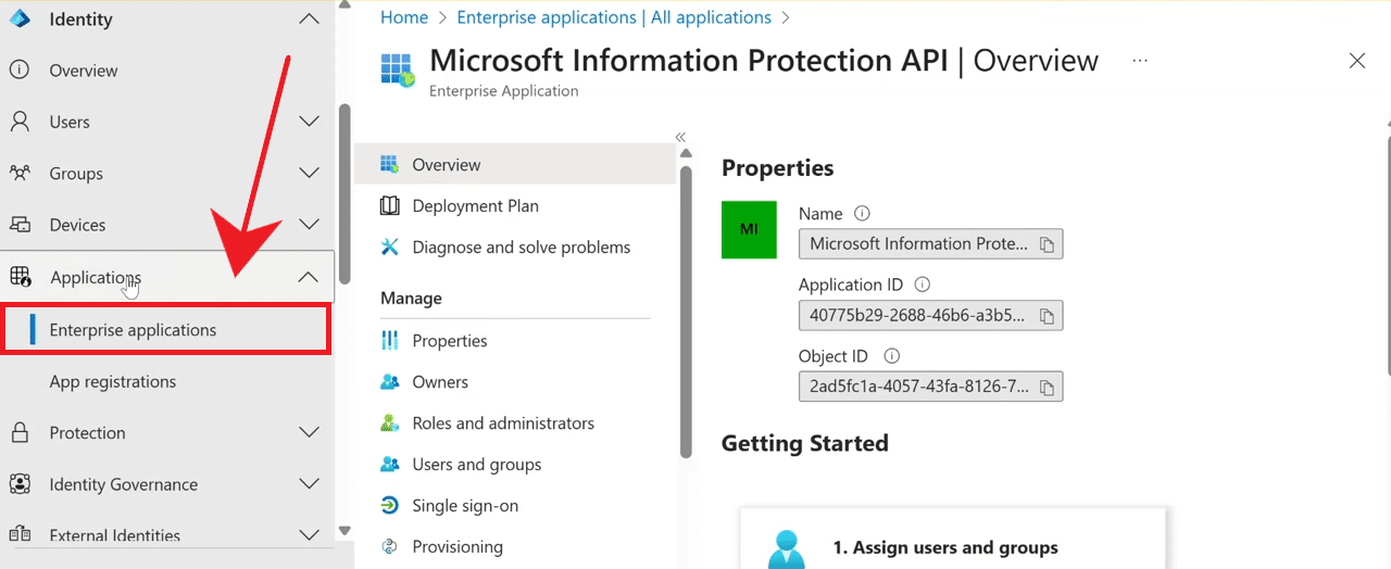 في العديد من الحالات المتأثرة، السبب الشائع المؤكد لهذا الخطأ هو أن كيان خدمة Microsoft Information Protection API يكون معطلًا داخل Entra ID. يشارك هذا التطبيق في تقييم التفويض والسياسة للمحتوى المحمي، لذا فإن تعطيله يمكن أن يعطل جزءًا من سلسلة المصادقة والوصول التي يعتمد عليها Outlook.